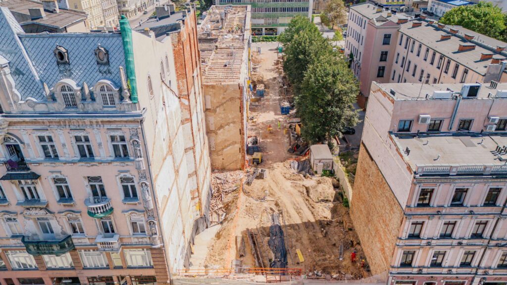 Prace budowlane w dosłownym słowa znaczeniu – idą pełną parą i w części Oficyny, i na działce Kamienicy Konesera.To miłe, że dostrzegają to media i zobowiązujące dla firmy do dotrzymania danej obietnicy.